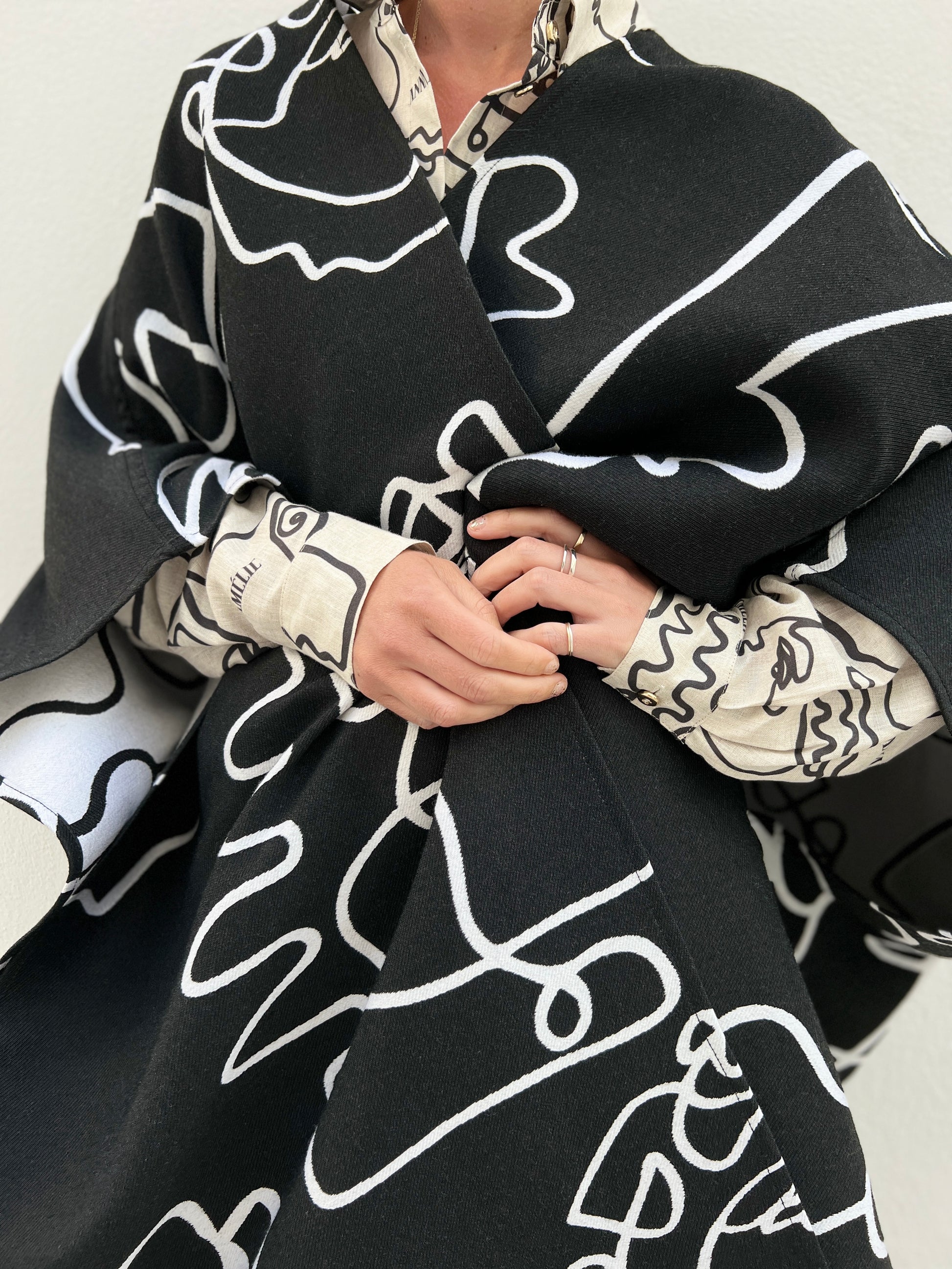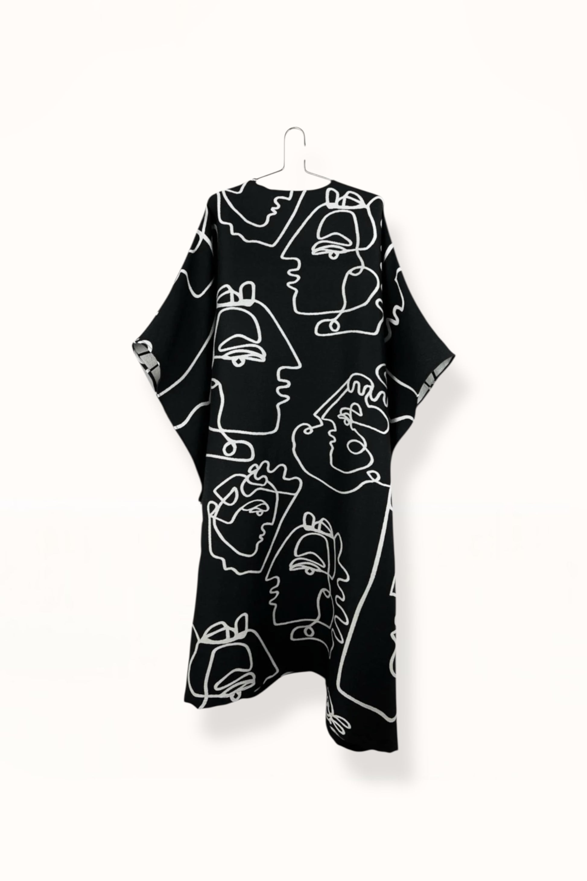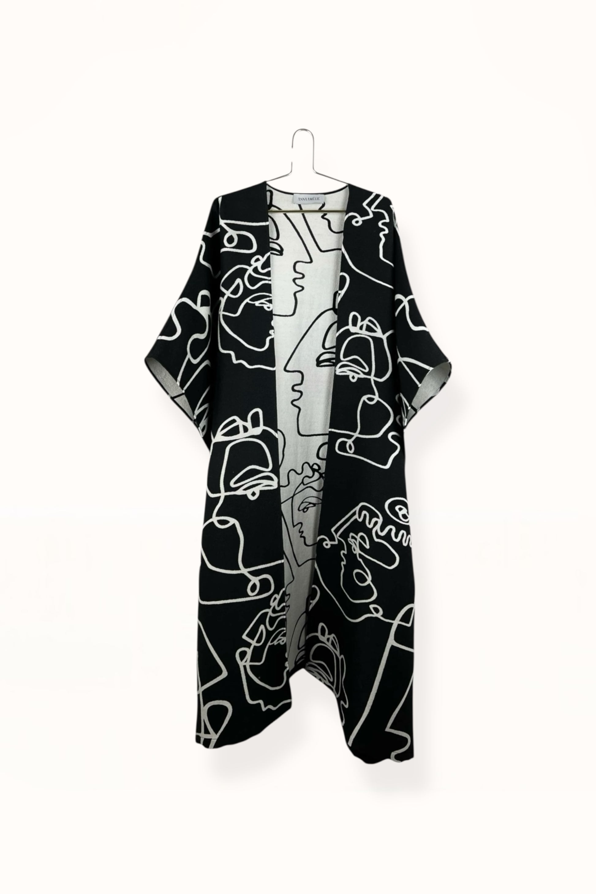 GIONA WOOL CAFTAN - BLACK & WHITE JACQUARD
