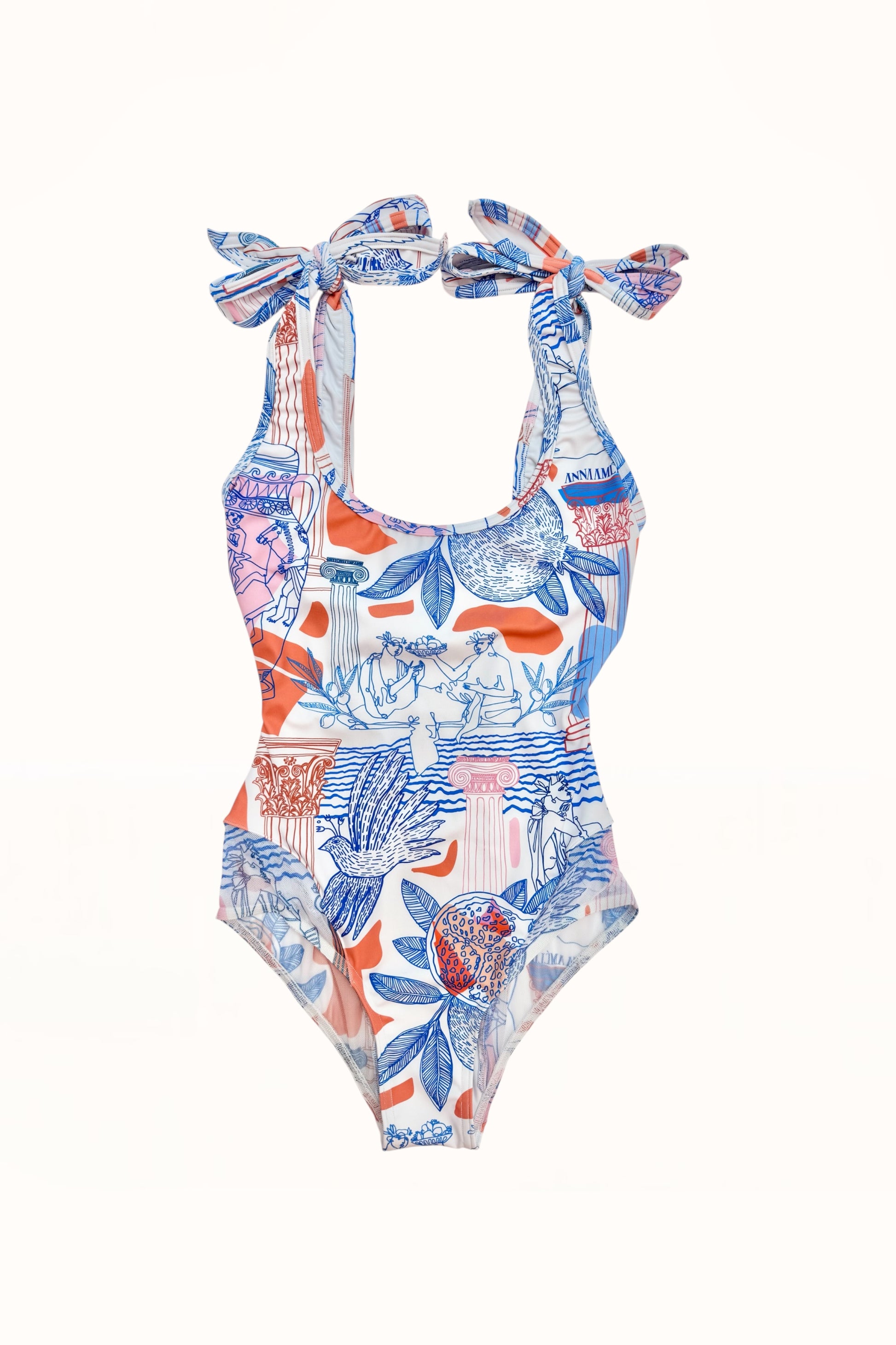 MESH PANEL ONE-PIECE SWIMSUIT - “BEST OF GREECE” PRINT | MULTICOLOR