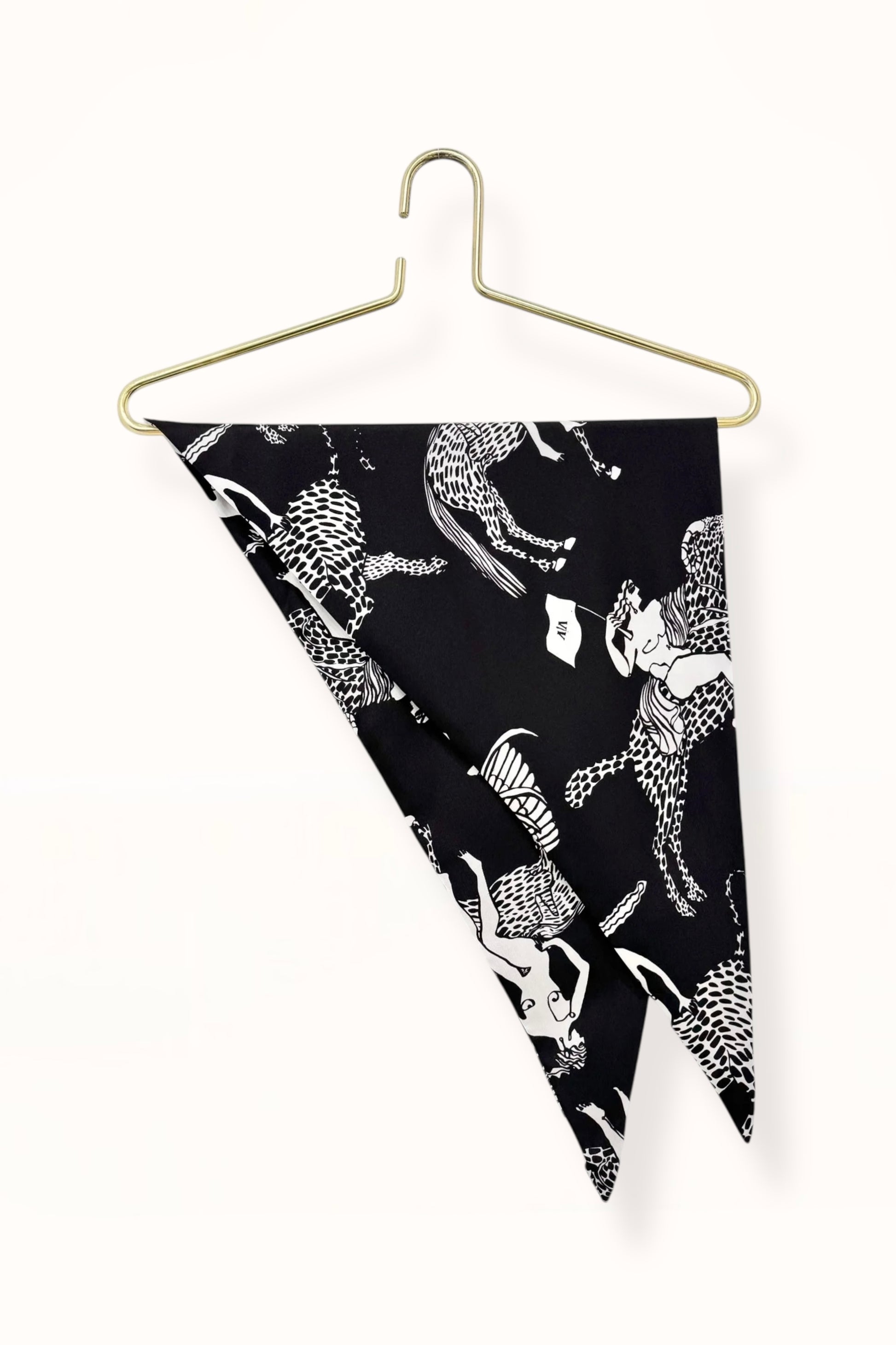 TRIANGLE SILK SCARF - “MYTHOLOGY” PRINT | BLACK